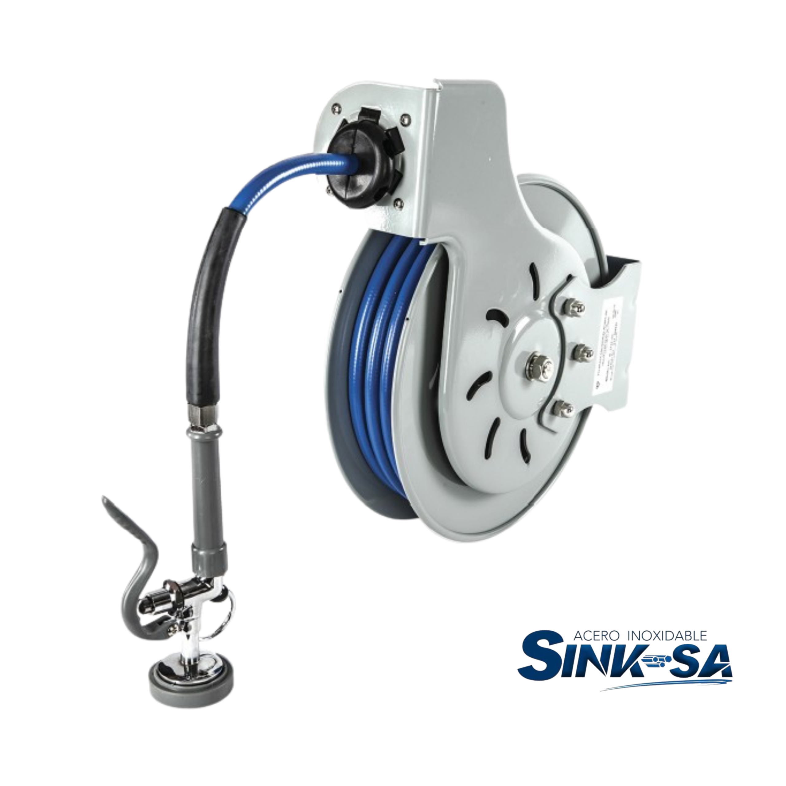 Esta manguera de carrete para lavado de cocina está diseñada para ofrecer un flujo de agua adecuado y un manejo cómodo durante el uso, permitiendo realizar tareas de limpieza de manera más rápida y efectiva en entornos profesionales como restaurantes, hoteles, comedores industriales y áreas de servicio. 🏭